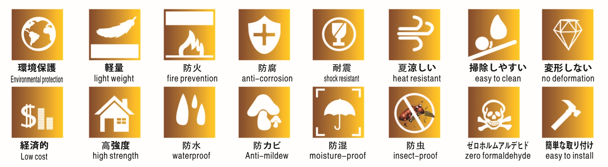 It possesses moisture resistance, mold resistance, waterproofing, soundproofing, heat resistance, and thermal insulation, making it usable under various environmental conditions. It is also excellent in workability, allowing it to be processed in the same way as regular wood, such as drilling, sawing, hammering, planing, and bonding. Additionally, it can be thermoformed, welded, carved, and printed.